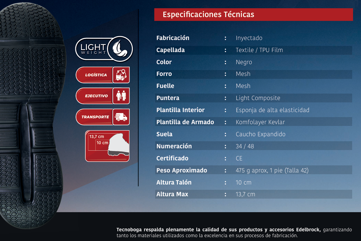 El Botín de Seguridad Edelbrock Fly Work 1 está diseñado para ofrecer máxima protección, confort y durabilidaden entornos laborales exigentes. Su diseño moderno combina resistencia estructural y materiales de última generación, garantizando seguridad sin sacrificar comodidad.