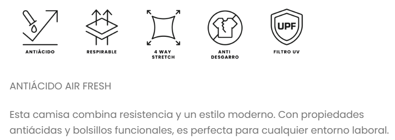 Su tela antiácida, elastizada y antidesgarro garantiza protección, durabilidad y libertad de movimiento. El calce slim y corte ergonómico permiten una silueta cómoda y estilizada, ideal tanto para faenas como para entornos corporativos. Ligera, respirable y con protección solar UPF 50+, esta prenda te mantiene fresco y protegido durante largas jornadas.