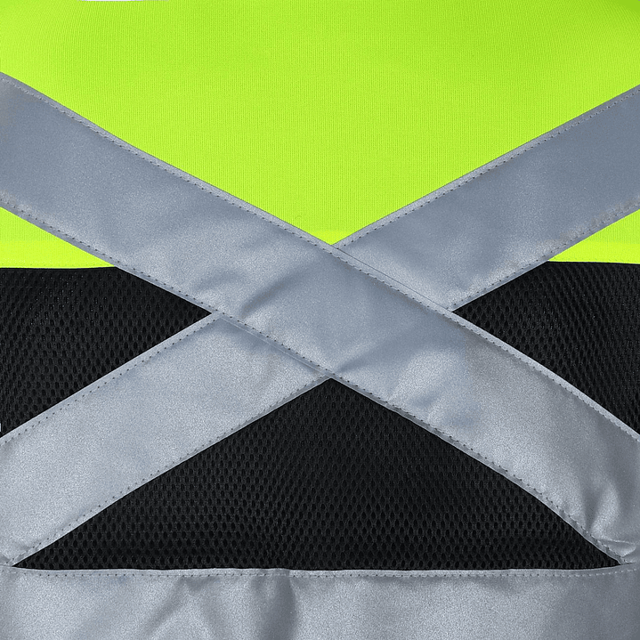 - Reflectante en la espalda en forma de X, aumentando aún más la visibilidad.