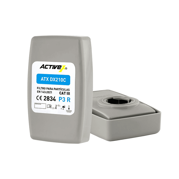 Los filtros DX210C están fabricados para ser utilizados con los respiradores de medio rostro ATX 150 Silicona, ATX 100 TPR y Respirador rostro completo (Full Face) ATX 1500 Silicona. El filtro DX 210C, otorga una protección contra partículas Sólida, liquidas acuosas y aceitosas con un 99,95% de eficiencia mínima. Contiene carbón activado que permite un muy buen alivio a olores de agentes contaminantes, tales como vapores y gases orgánicos en bajas concentraciones menores al límite permisible ponderado (LPP). Algunas aplicaciones o exposiciones más importantes pueden ser: Carbón, sílice, Cadmio, Arsénico, Asbesto, Arsénico, Plomo, Humos metálicos, etc.