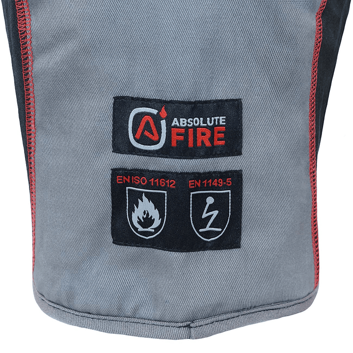 Gorro ignífugo de tres capas, con ajustes para ser utilizado con casco. Tela 1: 58% modacrilico, 40% aramida 2% fibra conductora 230 g/m². Relleno: 100% aramida, no tejida 80 g/m² Tela 2: Tejido, 99% aramida, 1% fibra conductora 150 g/m².