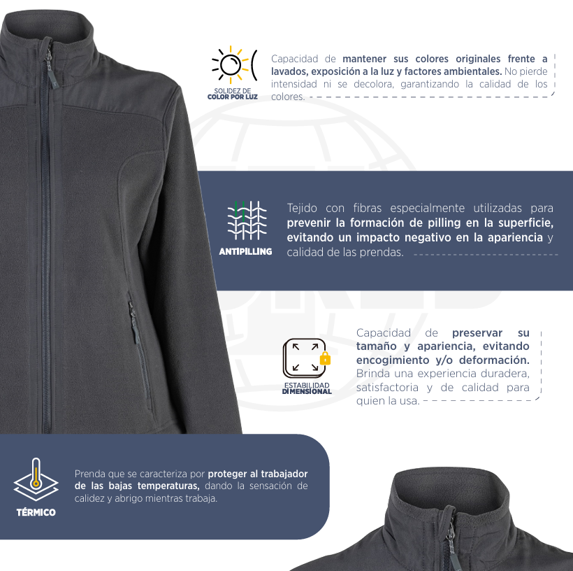 Además de brindar calidez en climas frescos, este micropolar es térmico, manteniéndote abrigado y cómodo en situaciones donde se requiere protección contra el frío.