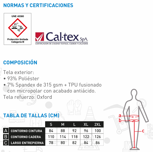 - Pantalón térmico de alto rendimiento, confeccionado en tela Softshell con interior de Micropolar, que ofrece una excelente capacidad térmica y una gran sensación de confort.