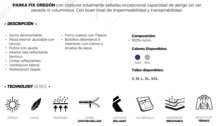La tecnología térmica integrada te envuelve en una calidez reconfortante, ideal para enfrentar las temperaturas más frescas. Su diseño respirable asegura que te sientas cómodo y enérgico, incluso durante las actividades más activas. Los detalles reflectivos no solo añaden un toque moderno a tu estilo, sino que también mejoran tu visibilidad en condiciones de poca luz, proporcionando una capa adicional de seguridad. La Parka Fix Oregón no solo te protege, sino que también te ayuda a destacar en cualquier entorno.