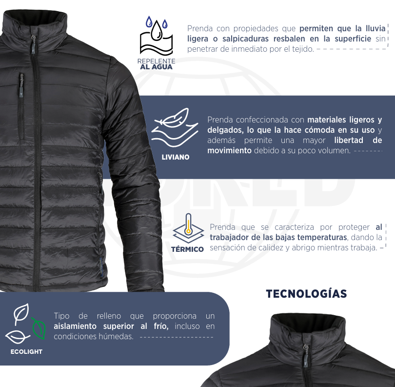 Conquista cualquier desafío con nuestra Parka Térmica Light, la elección ideal para aquellos que buscan una protección excepcional sin sacrificar la comodidad y la sostenibilidad. Diseñada con tecnología Ecolight, esta parka redefine la moda consciente mientras te mantiene cálido y seco en tu día a día.
