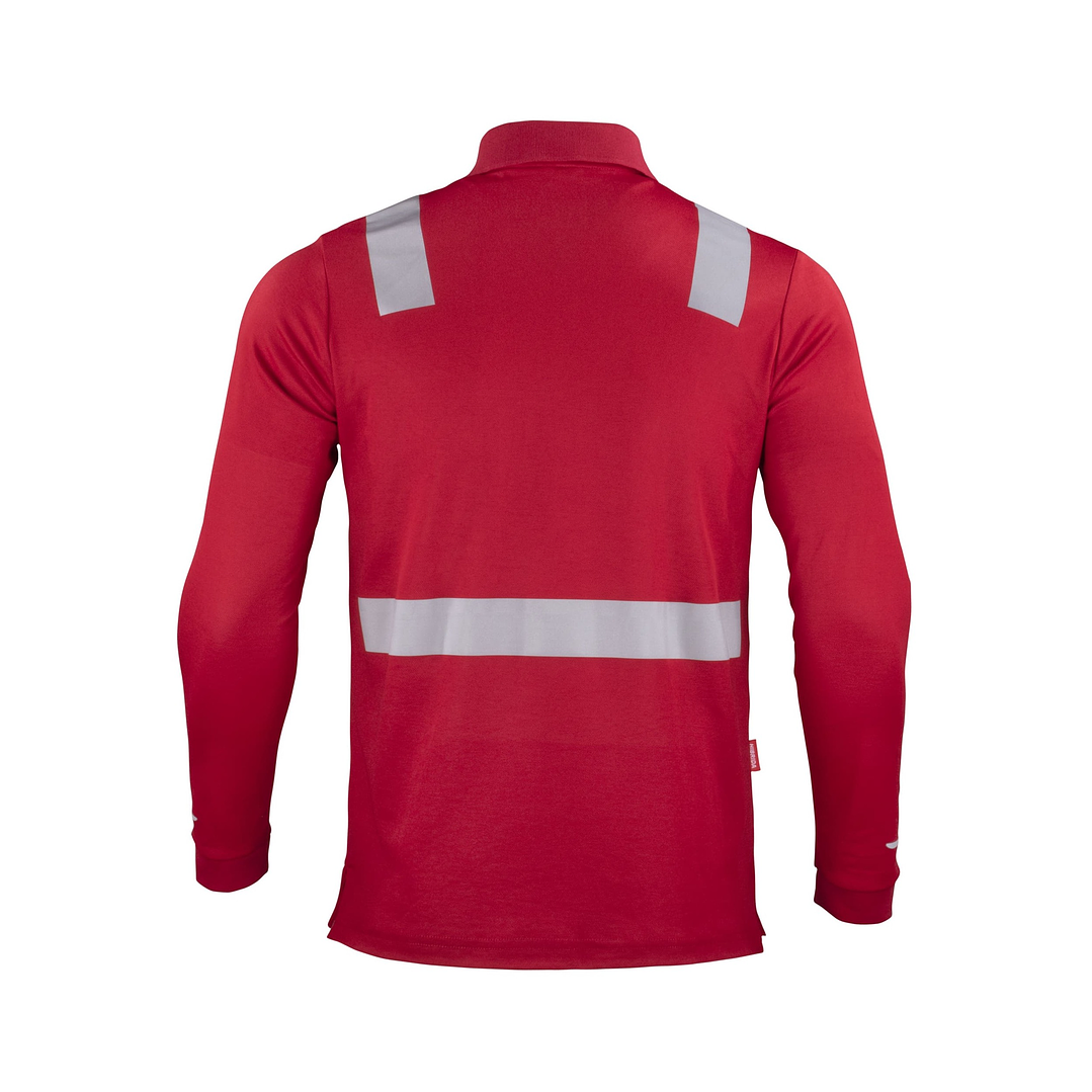 Polera polo manga larga, diseñada con tecnología "híbrida". Prenda que nos entrega una fusión perfecta, para el cuidado de tu piel gracias a su composición de algodón en el interior y poliéster en el exterior. Esta confección le permite a tu cuerpo liberar la transpiración, evitando la sensación de humedad y combinando elementos de alta visibilidad. Prenda perfecta, para desarrollar trabajos en exterior, ya que posee cintas reflectivas termo selladas de 5 cm de ancho.