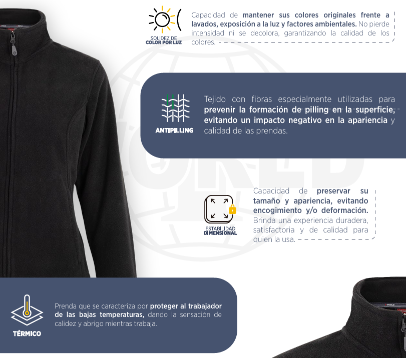 Diseñado para brindarte estabilidad dimensional, este micropolar se ajusta a tu cuerpo sin perder su forma original, proporcionando una sensación de confort inigualable.