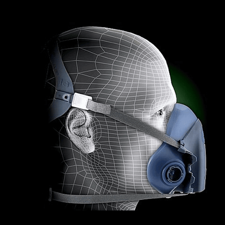 - Fabricadas en un elastómero de silicona muy flexible que ejerce una baja presión sobre el rostro y reduce la tensión en el área de la nariz por la banda ajustada a la cabeza